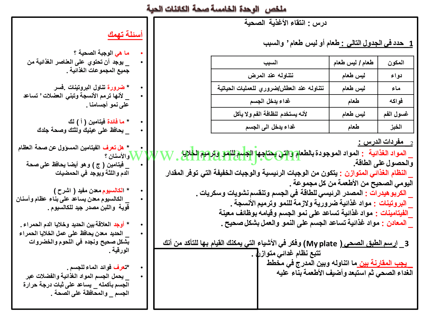 | اضغط هنا لتحميل وعرض ( ملخص الوحدة الخامسة صحة الكائنات الحية ) | |||