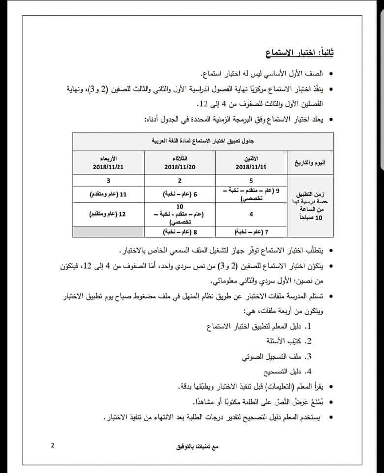 معلومات الملف: مواعيد امتحانات الإستماع و الكتابة للصفوف من الرابع وحتى الثاني عشر الفصل الأول 2018-2019 | ||