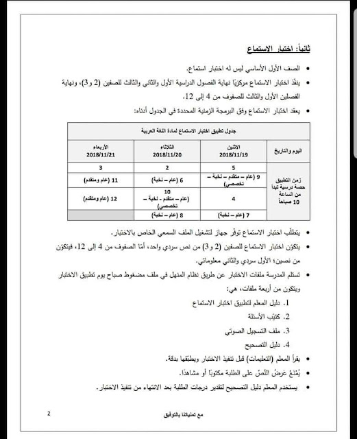 | مواعيد امتحانات الإستماع و الكتابة للصفوف من الرابع وحتى الثاني الفصل الأول | ||