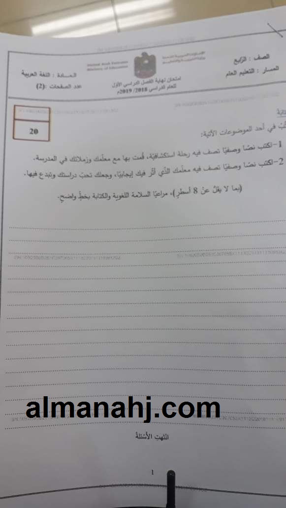 معلومات الملف: الصف الرابع, الفصل الأول, لغة عربية, 2018-2019, أسئلة الكتابة في مادة اللغة العربية | ||