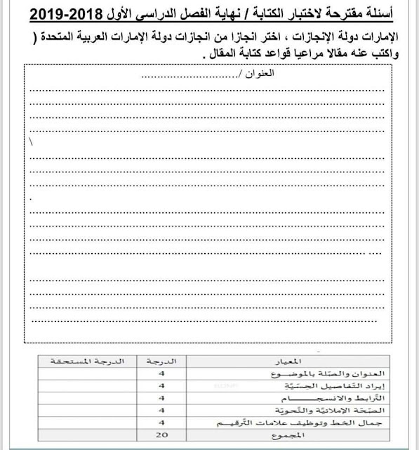 معلومات الملف: الصف السادس, الفصل الأول, لغة عربية, 2018-2019, اسئلة مقترحة لاختبار الكتابة الرسمي | ||