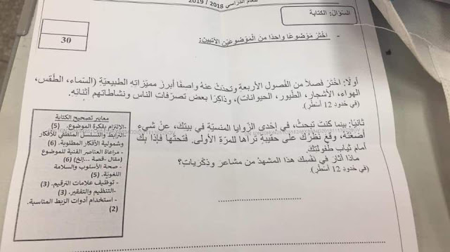 الصف السابع, الفصل الأول, لغة عربية, 2018-2019, أسئلة امتحان الكتابة الرسمي