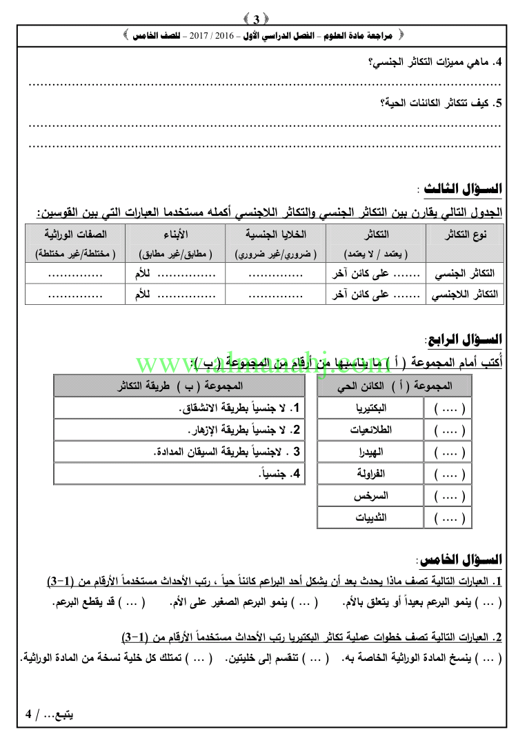 معلومات الملف: الصف الخامس, الفصل الأول, علوم, 2018-2019, مراجعة علوم الفصل الاول | |||