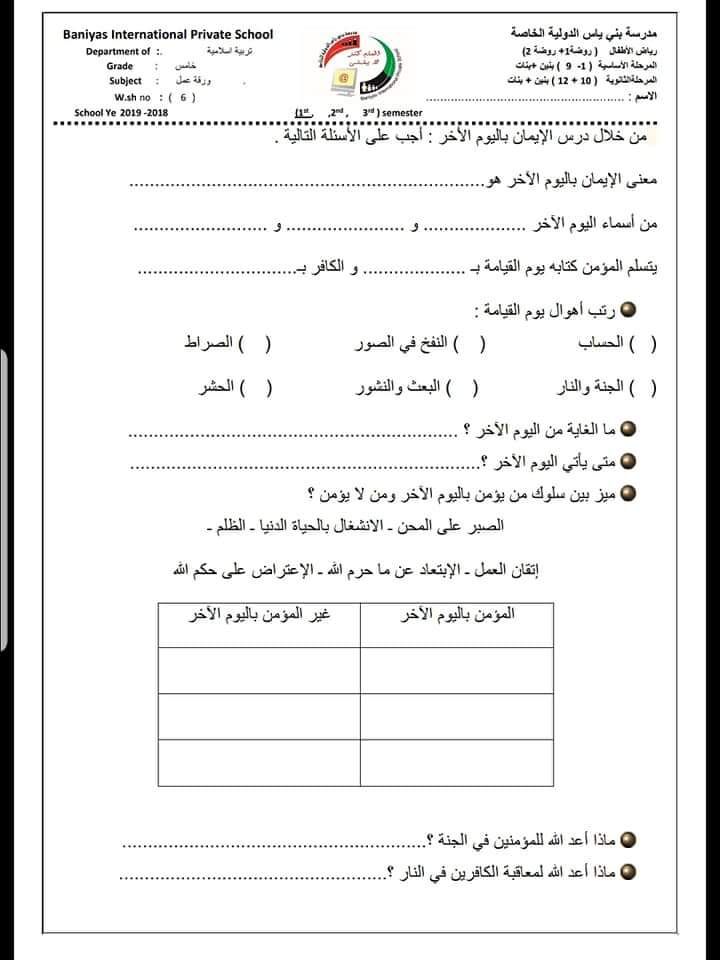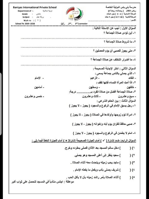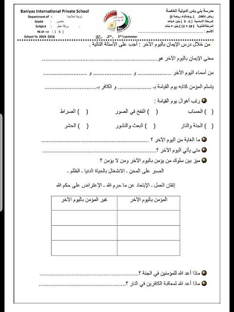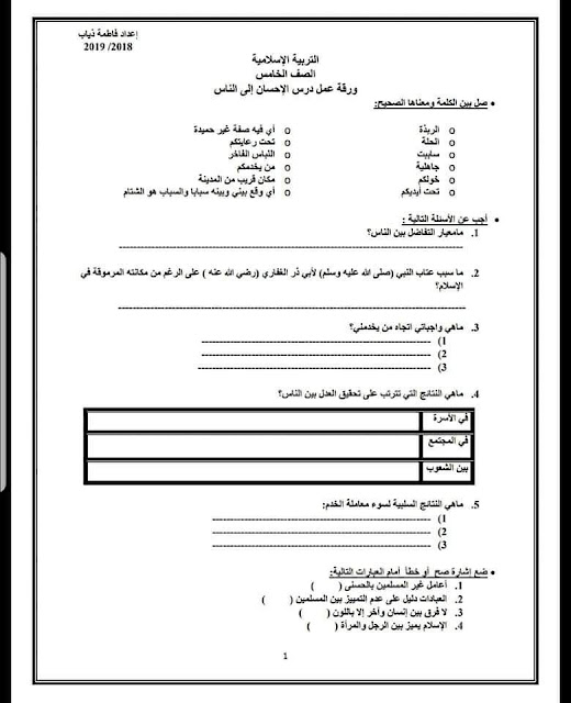 معلومات الملف: الصف الخامس, الفصل الأول, تربية اسلامية, 2018-2019, اوراق عمل تربية اسلامية عددها 3 اوراق | ||