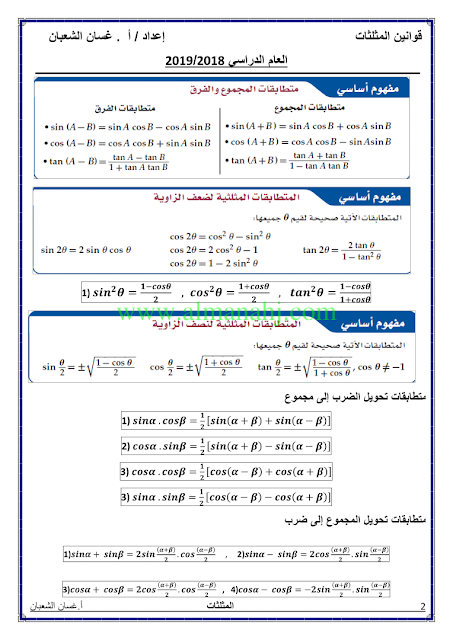 اضغط هنا لتحميل وعرض ( قوانين المثلثات ) |