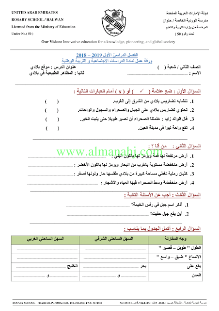 أنت هنا: موقع المناهج ⇦ المناهج الإماراتية ⇦ الصف الثاني ⇦ اجتماعيات ⇦ الفصل الأول ⇦ أوراق عمل |