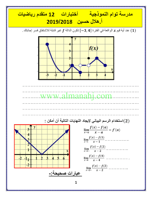 معلومات الملف: الصف الثاني عشر المتقدم, الفصل الأول, رياضيات, 2018-2019, اختبارات. ملف اول | |||