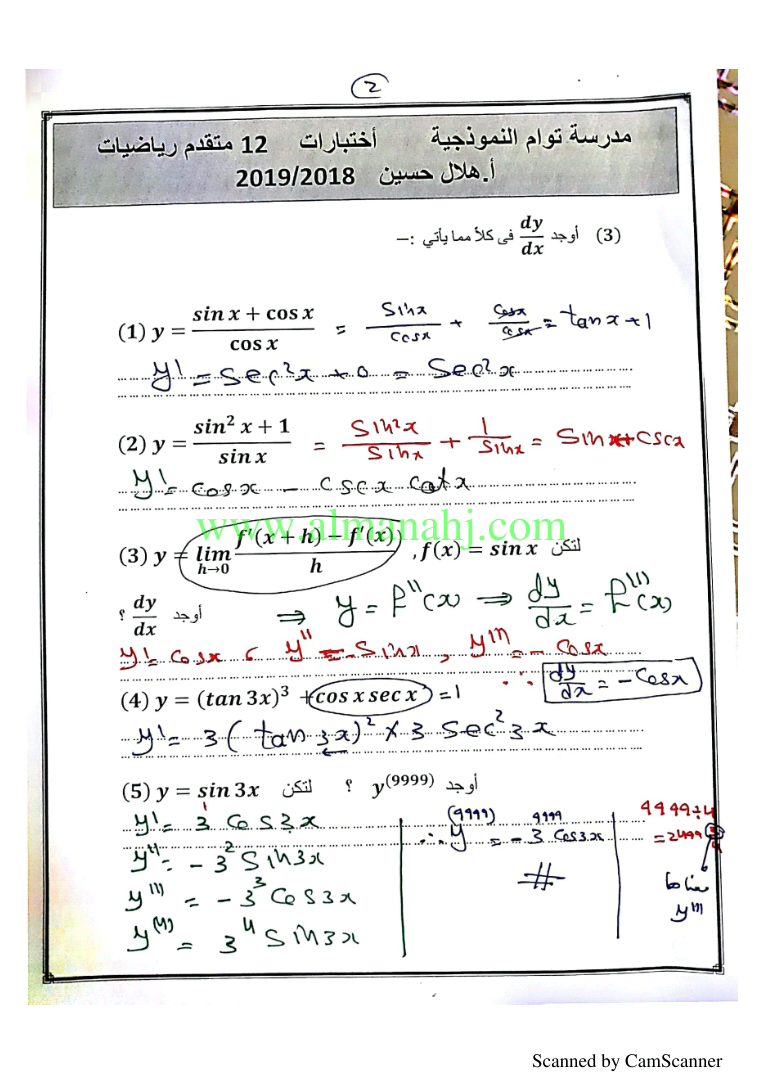 معلومات الملف: الصف الثاني عشر المتقدم, الفصل الأول, رياضيات, 2018-2019, اختبارات. ملف ثاني | |||
