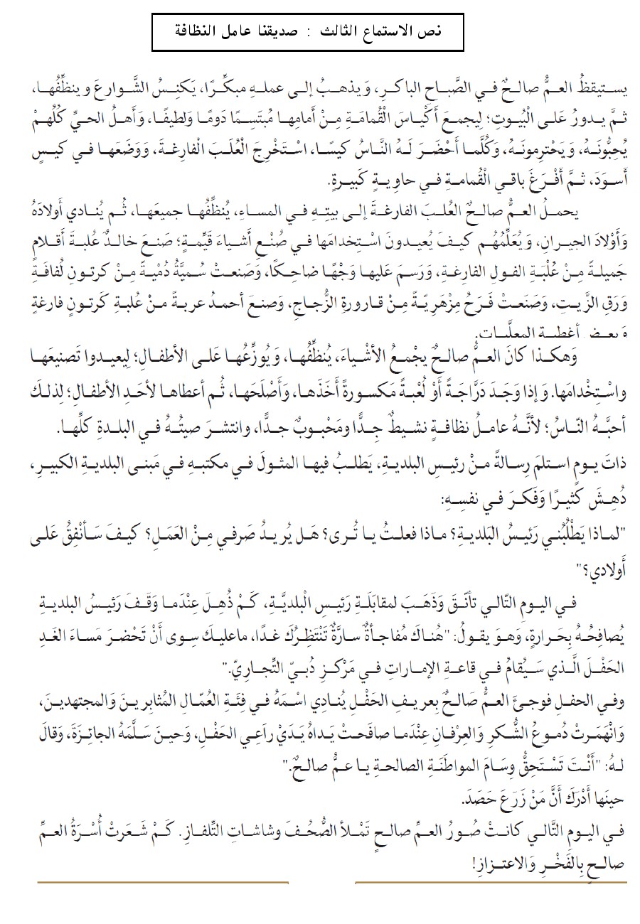 | نص الاستماع الثالث ( صديقنا عامل النظافة ) | |||