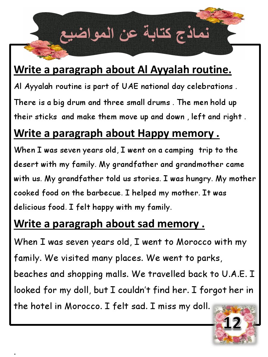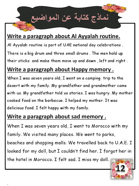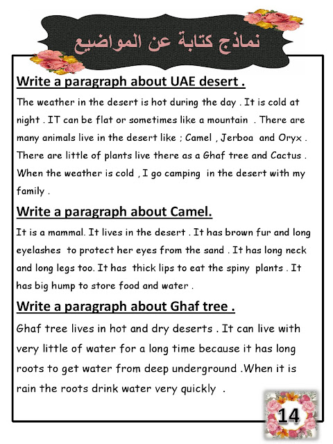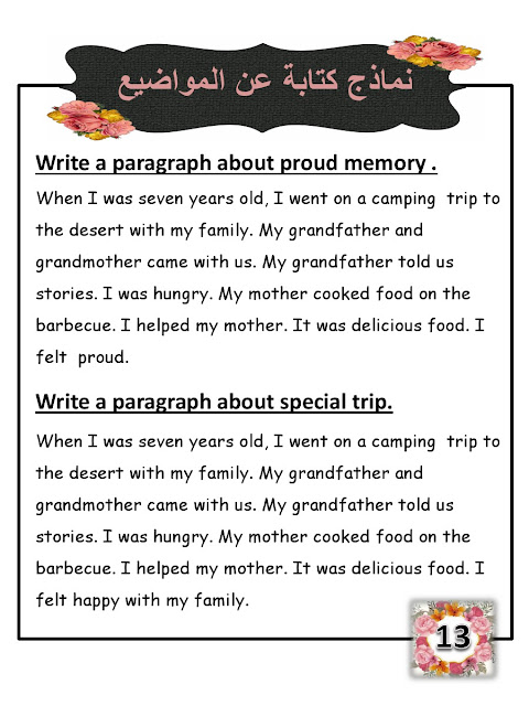 الصف الرابع, الفصل الأول, لغة عربية, 2018-2019, مواضيع اللغة الانجليزية كاملة