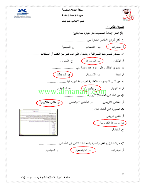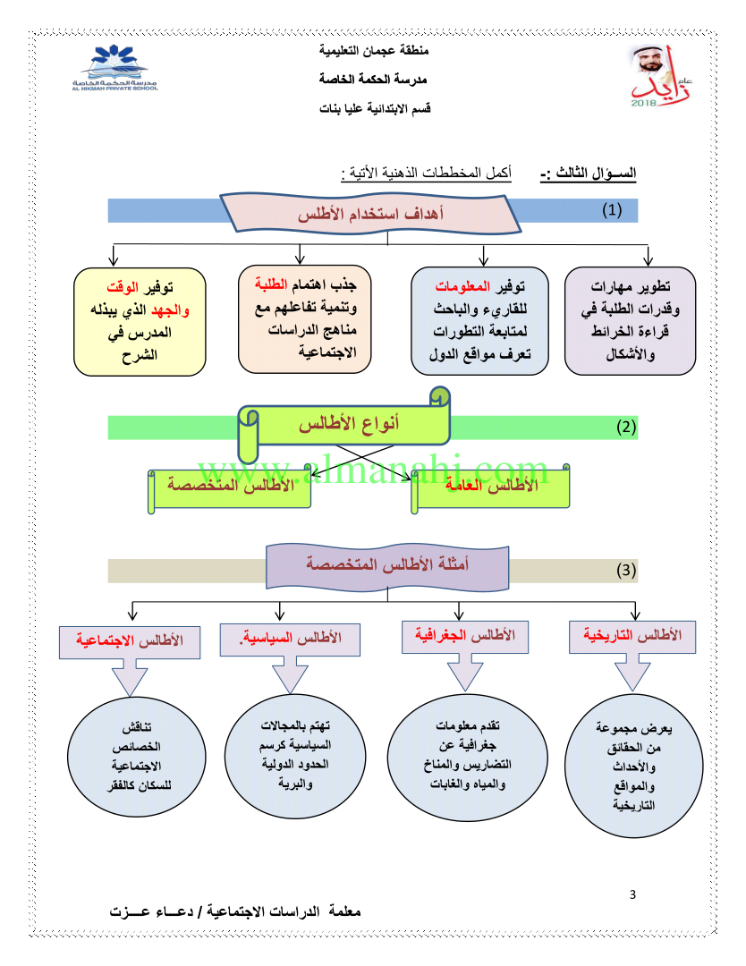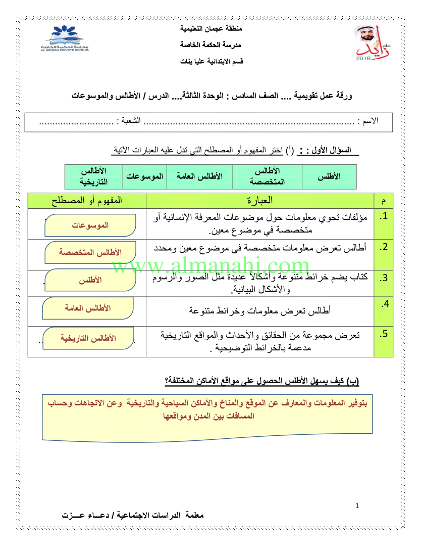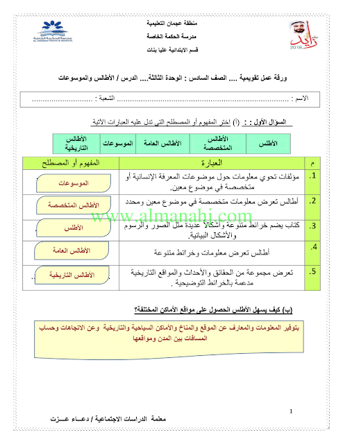 معلومات الملف: الصف السادس, الفصل الأول, اجتماعيات, 2018-2019, ورقة عمل الاطلس والموسوعات | |||