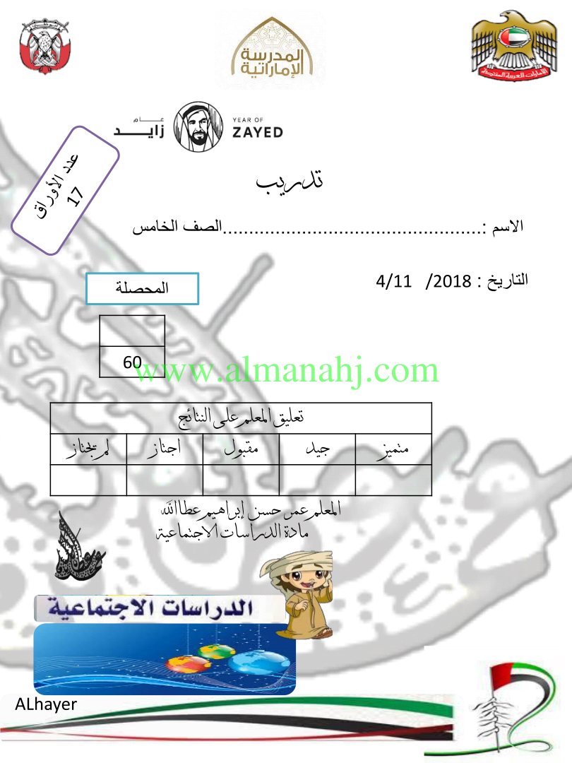 معلومات الملف: الصف الخامس, الفصل الأول, اجتماعيات, 2018-2019, اوراق عمل الوحدة الثانية | |||