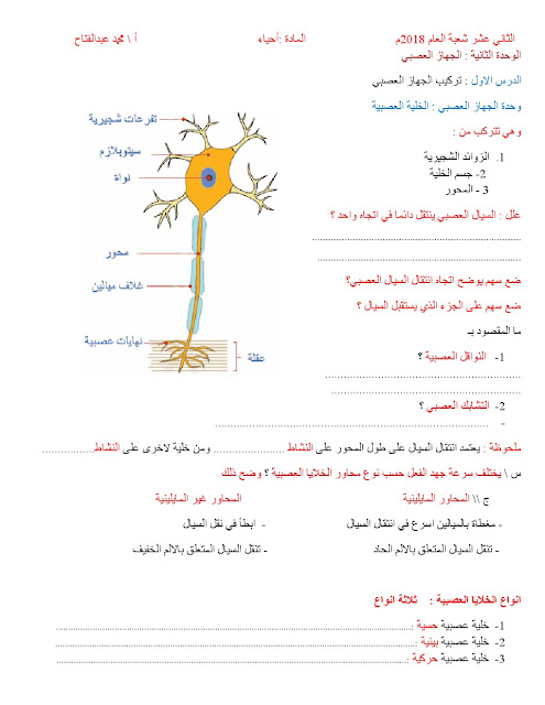 الصف الثاني عشر العام, الفصل الأول, علوم, 2018-2019, تركيب الجهاز العصبي للتحميل اتبع الرابط التالي: https://drive.google.com/file/d/19WmLzDroFfBhQB0V9E-eXrVeY8IcAQED/view