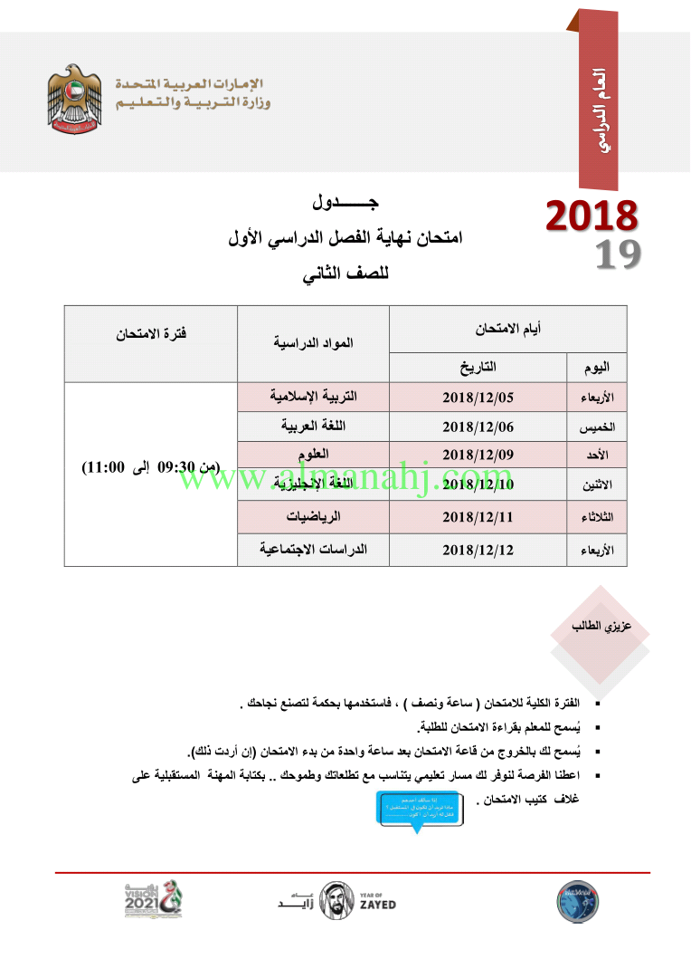 معلومات الملف: جدول امتحان الصف الثاني نهاية الفصل الاول للعام الدراسي 2018-2019 | ||