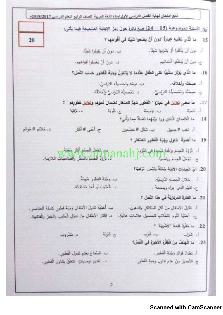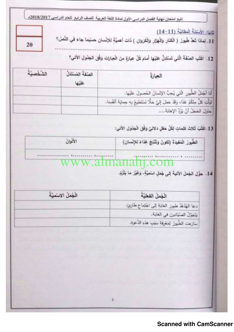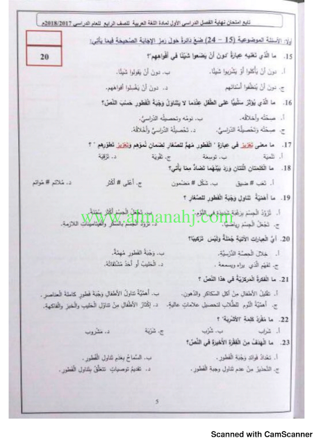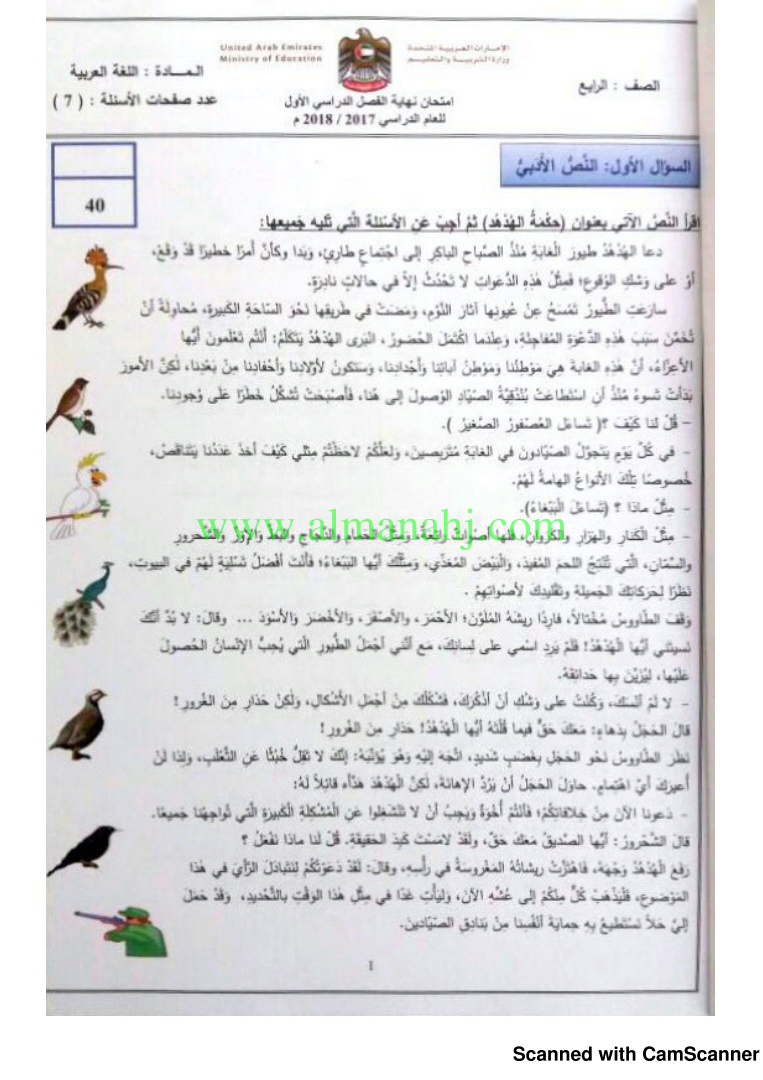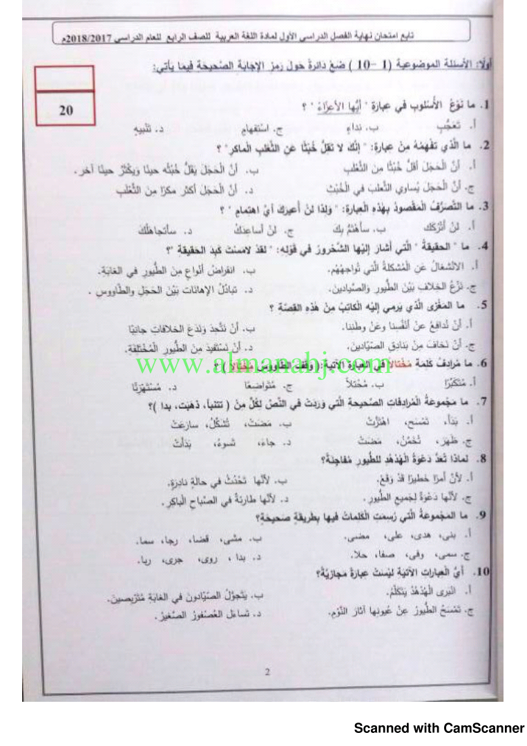 معلومات الملف: الصف الرابع, الفصل الأول, لغة عربية, 2018-2019, امتحان نهاية الفصل الاول لعام 2017-2018 | |||