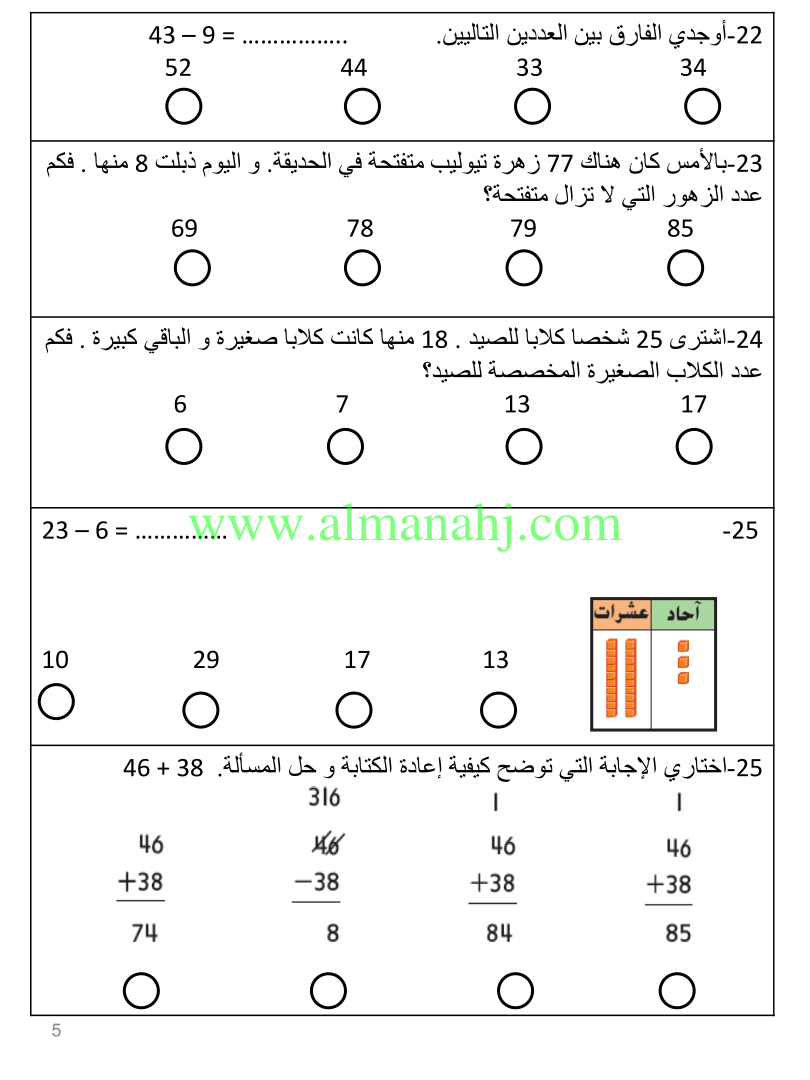 جميع الاختبارات التشخيصية المتوفرة في جميع المواد ولجميع الصفوف | |