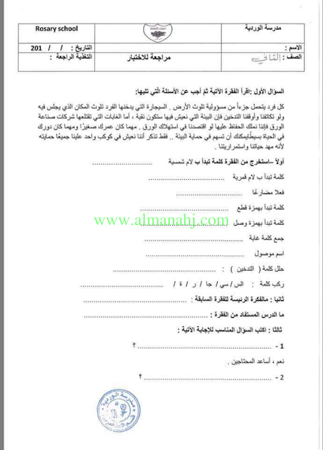 معلومات الملف: الصف الثاني, الفصل الأول, لغة عربية, 2018-2019, ورقة مراجعة لغة عربية | |||