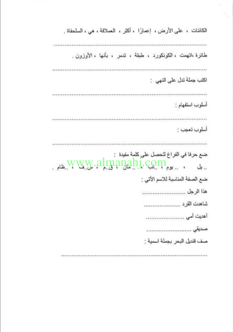 | 1. امتحان نهاية الفصل الأول مع الحل