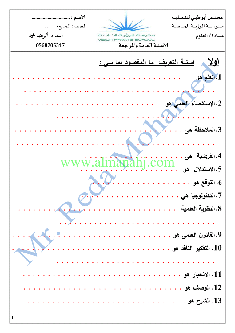 معلومات الملف: الصف السابع, الفصل الأول, علوم, 2018-2019, اسئلة عامة ومراجعة اسئلة | |||