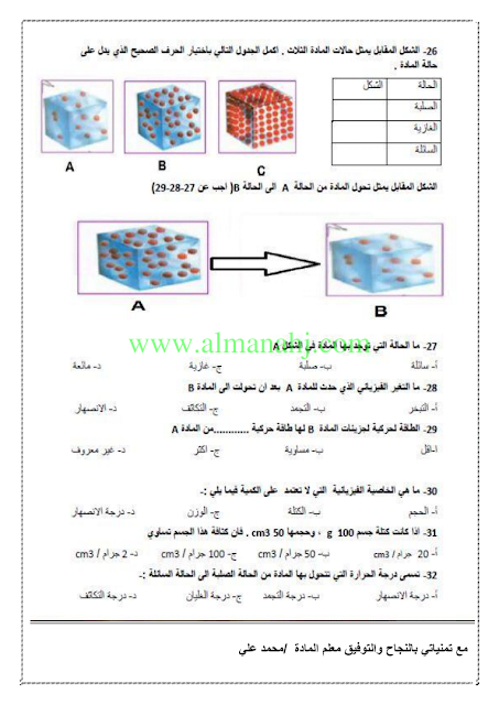 1. كل ما يخص امتحان الاعادة (تمكين) للصف السابع