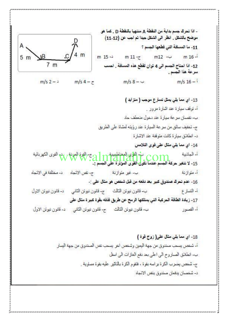 اوراق عمل الوحدة 2 الحركة والقوى ونيوتن | |||
