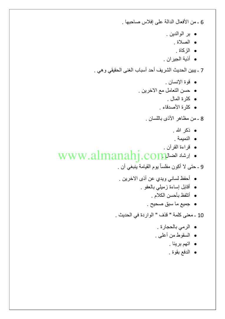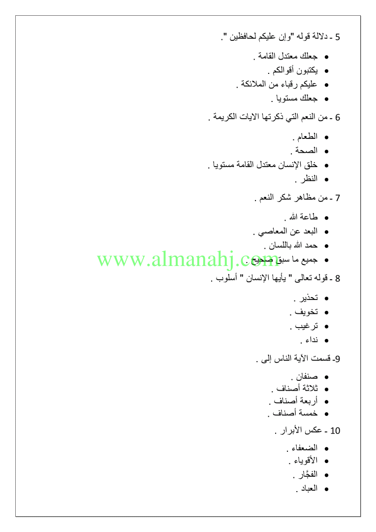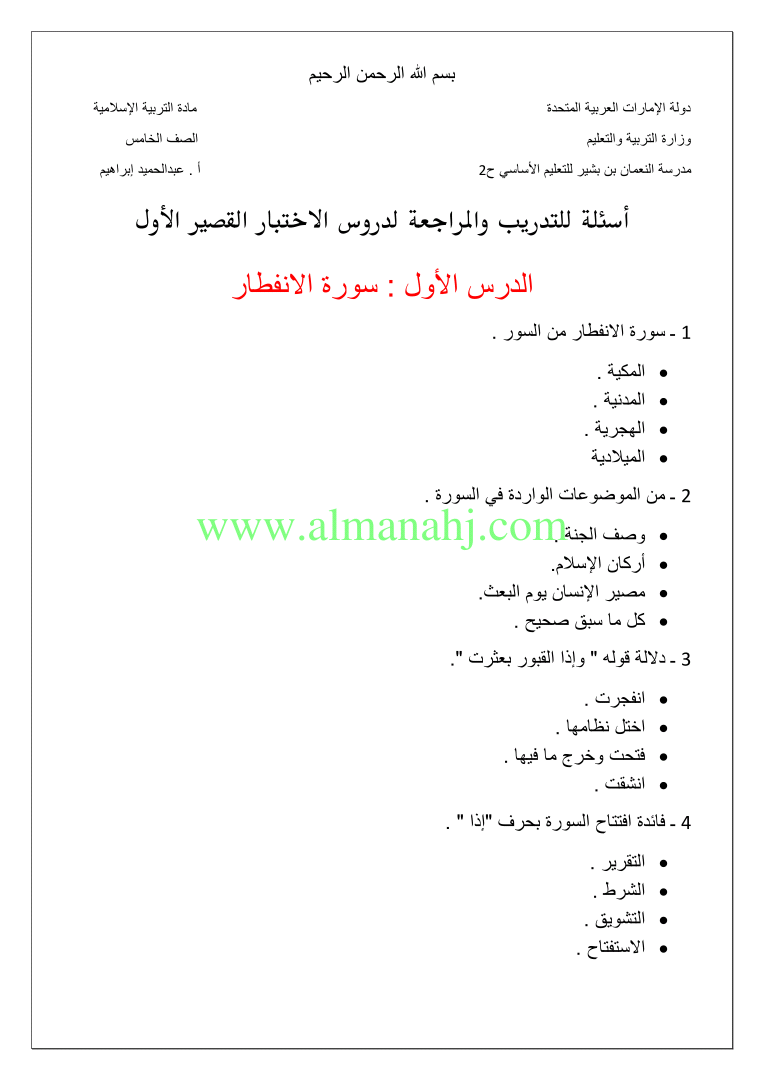 معلومات الملف: الصف الخامس, الفصل الأول, تربية اسلامية, 2018-2019, اسئلة تدريب ومراجعة لدروس اختبار قصير اول | |||
