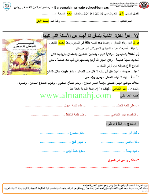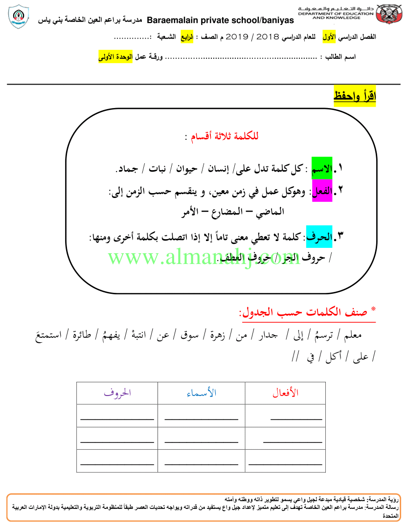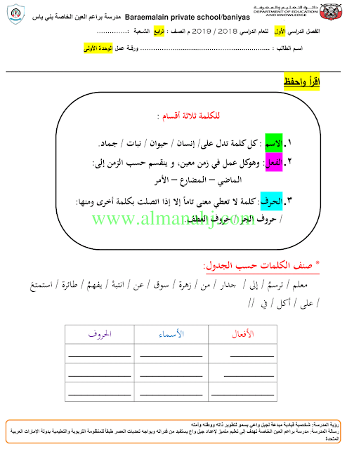 معلومات الملف: الصف الرابع, الفصل الأول, لغة عربية, 2017-2018, اوراق عمل لغة عربية فصل أول | |||