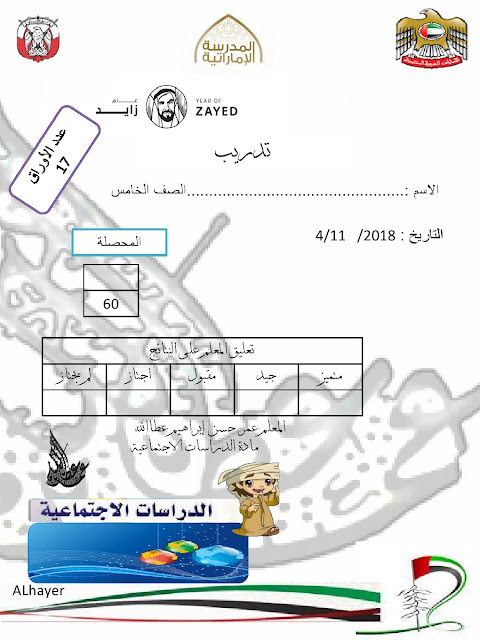 معلومات الملف: الصف الخامس, الفصل الأول, اجتماعيات, 2018-2019, سبع عشرة ورقة مراجعة قبيل الامتحان | |||