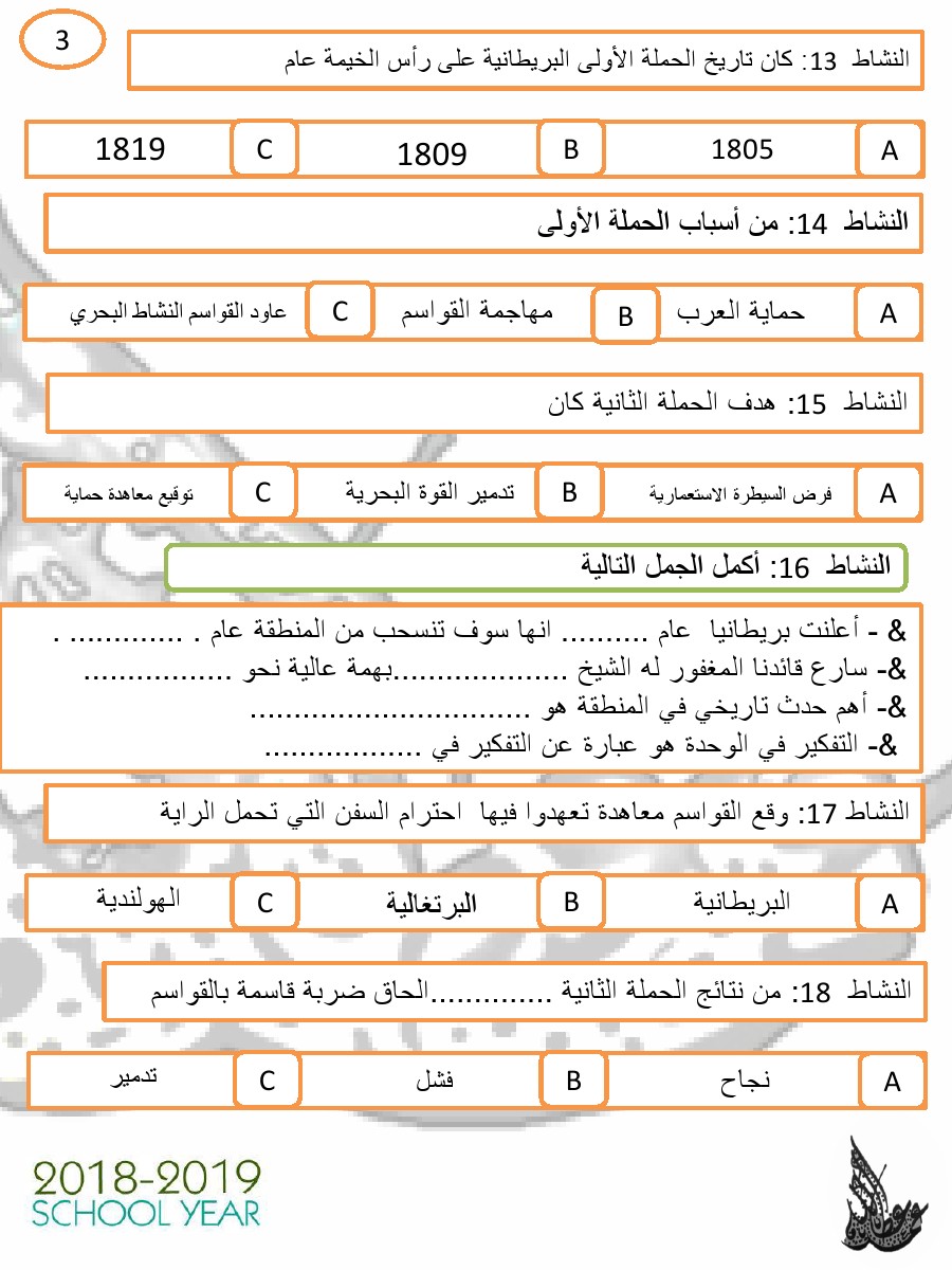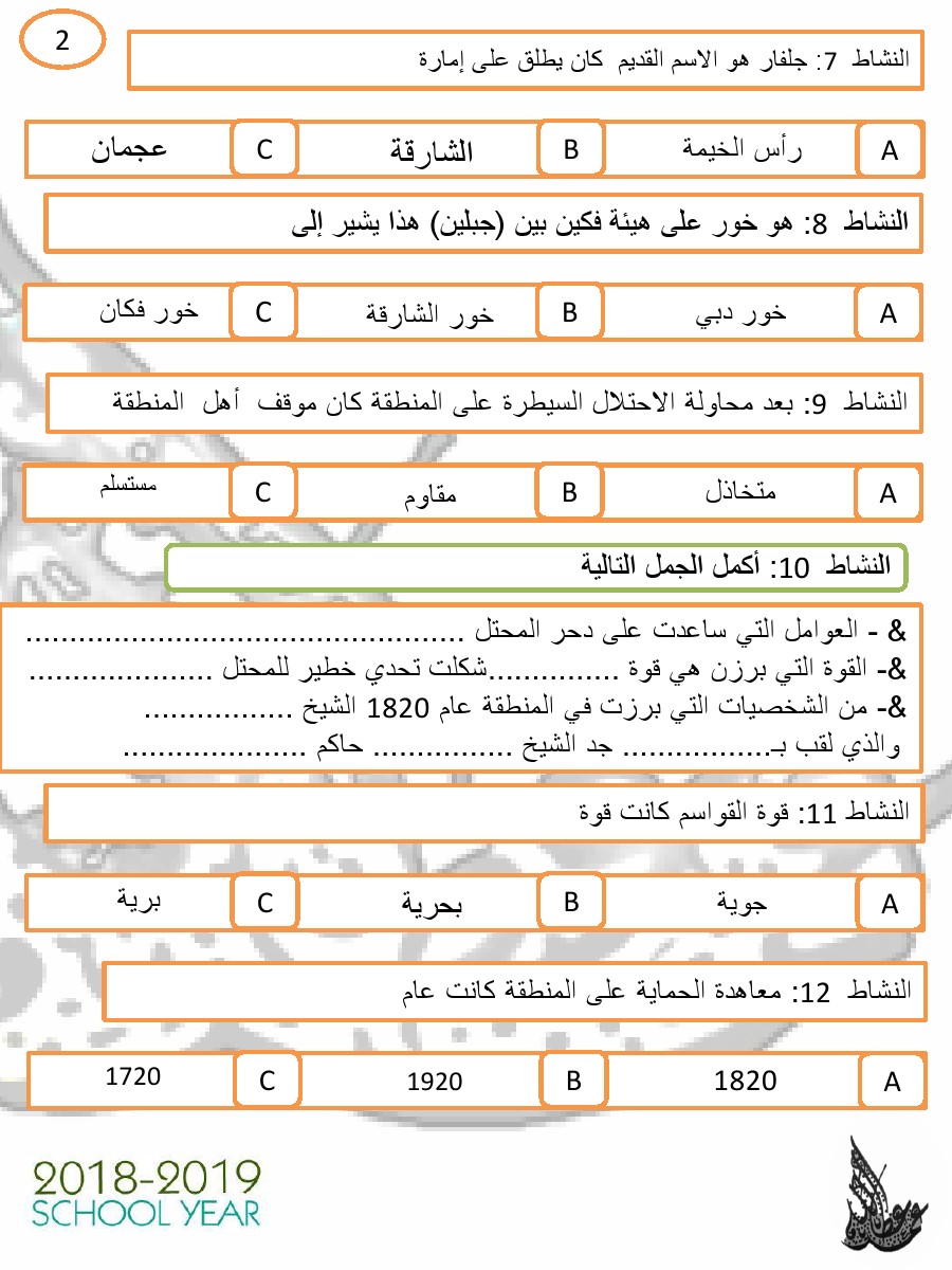 السابق: منهاج أبو ظبي أوراق عمل مراجعة اختيار من متعدد | الملف الحالي: 6134 | التالي: ورقة عمل درس تعزيز الجملة الاسمية والجملة الفعلية | |