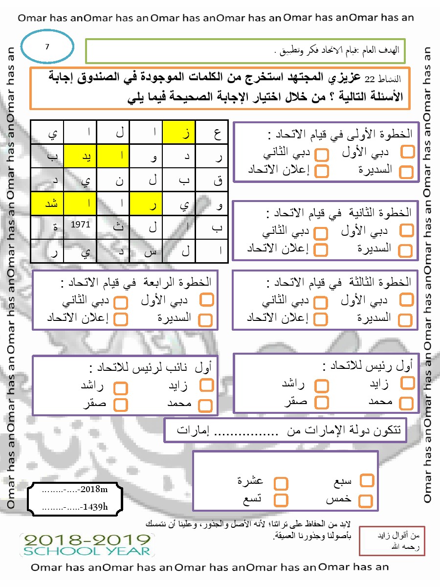 سبع الدراسية ورقة مراجعة قبيل الامتحان | |||