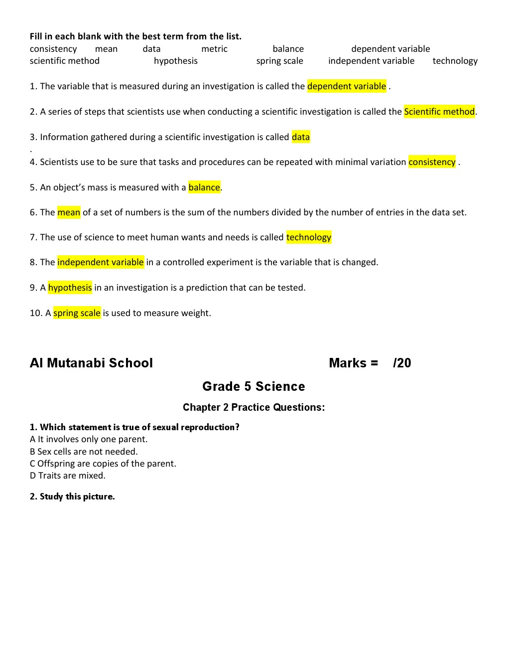 أنت هنا: موقع المناهج ⇦ المناهج الإماراتية ⇦ الصف الخامس ⇦ علوم ⇦ الفصل الأول ⇦ الامتحان النهائي |