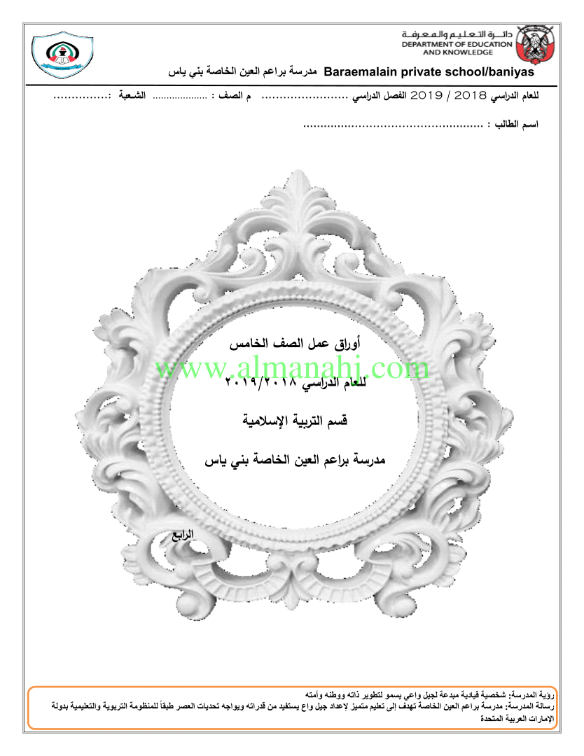 معلومات الملف: الصف الخامس, الفصل الأول, تربية اسلامية, 2018-2019, اوراق عمل عددها 4 اوراق | |||