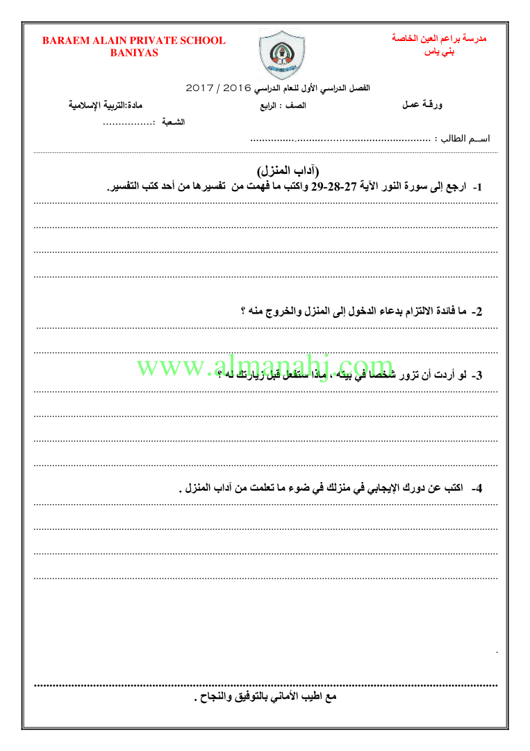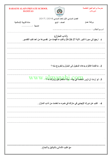 اوراق عمل للوحدة الاولى | |||