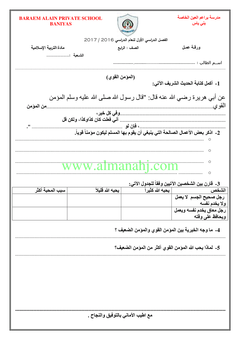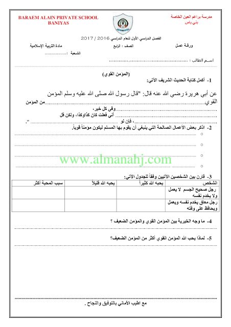المادة: تربية اسلامية | |||
