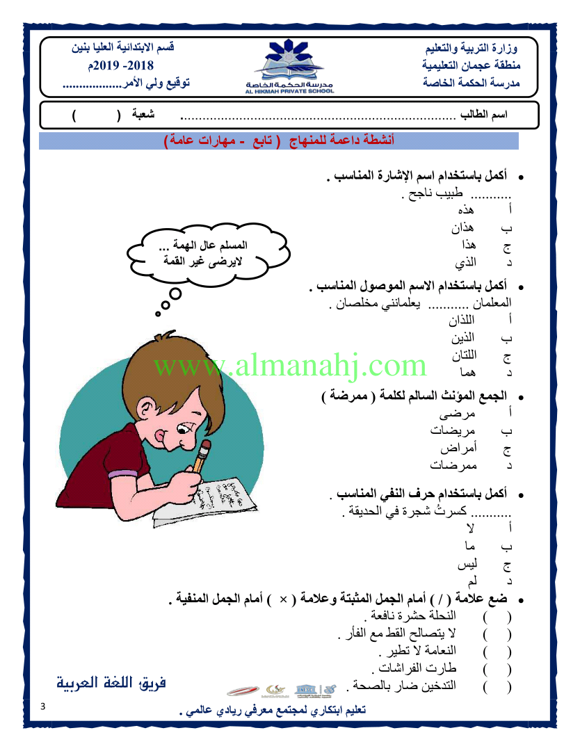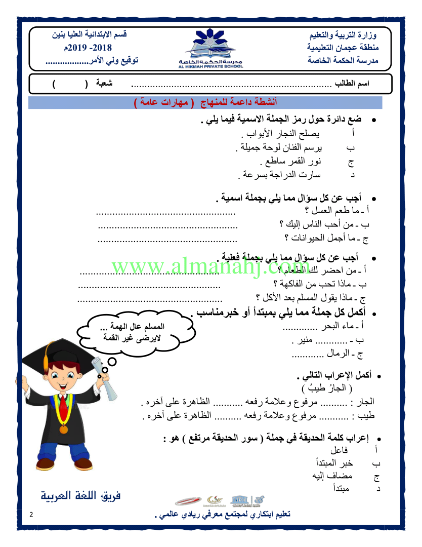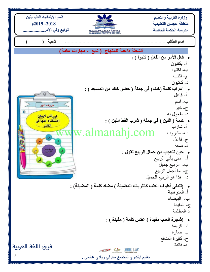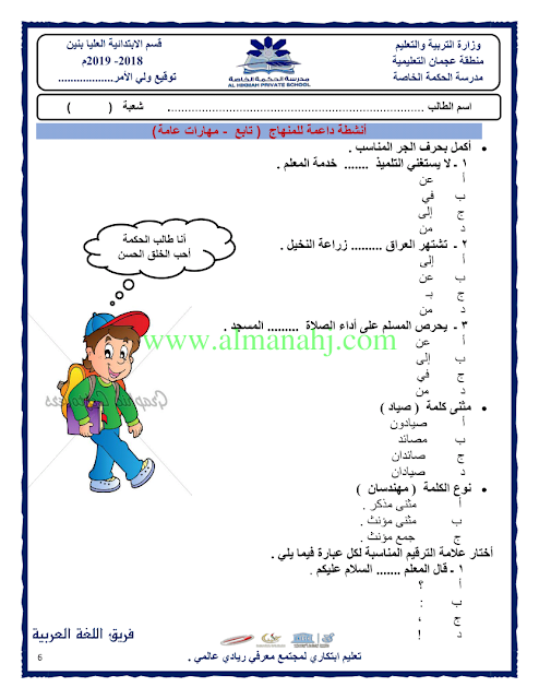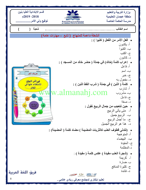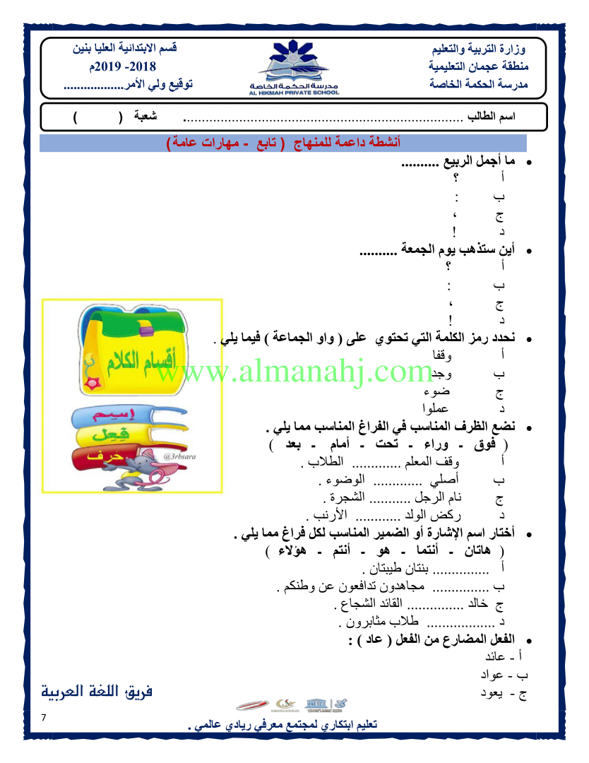 معلومات الملف: الصف الرابع, الفصل الأول, لغة عربية, 2018-2019, انشطة داعمة لجميع المهارات | |||