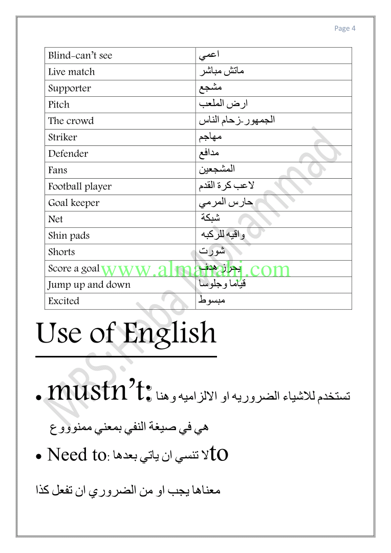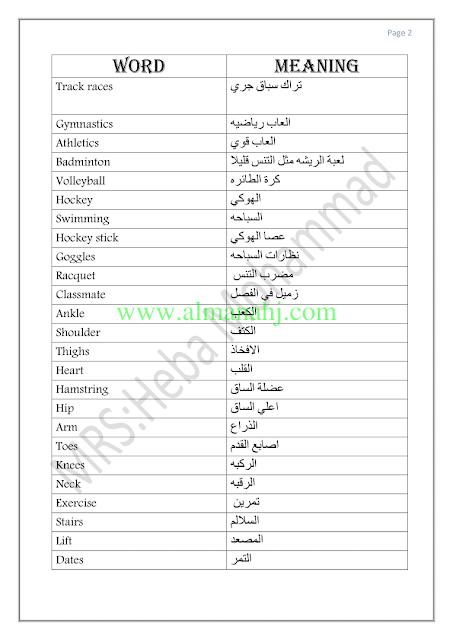 معلومات الملف: الصف السادس, الفصل الأول, لغة انكليزية, 2018-2019, مفردات الوحدةالثالثة مع الترجمة | |||