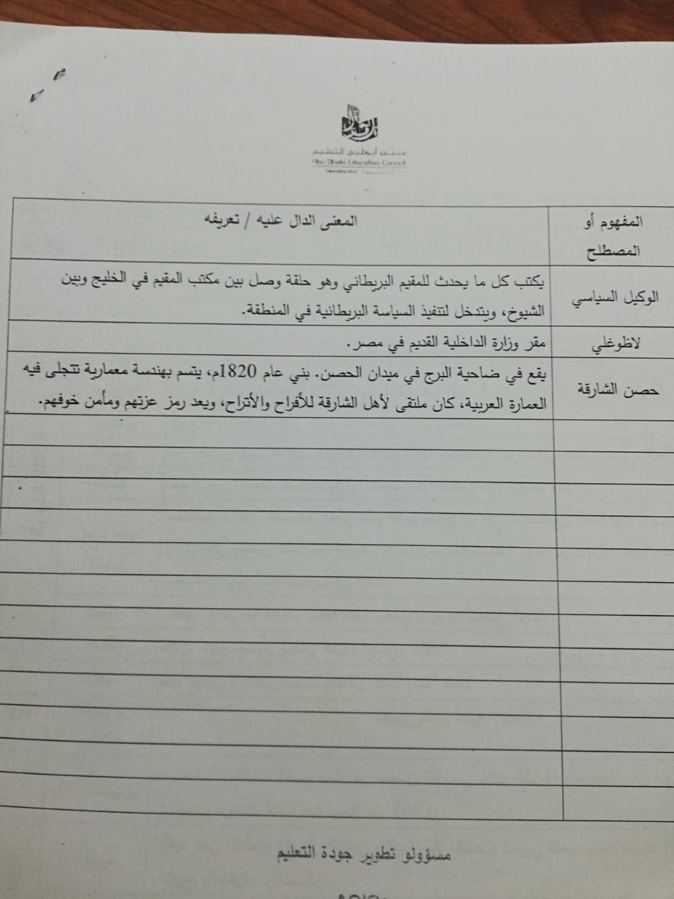 أهلاً بكم جميعاً طلاباً ومدرسين وأهالي طلبة ومهتمين، في قسم دولة الإمارات ، نحن الآن في الفصل الأول من العام الدراسي 2025/2026 وتاريخ اليوم 2025/10/11 م | |