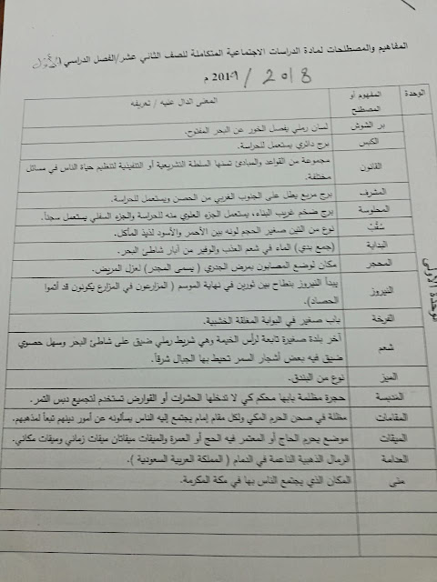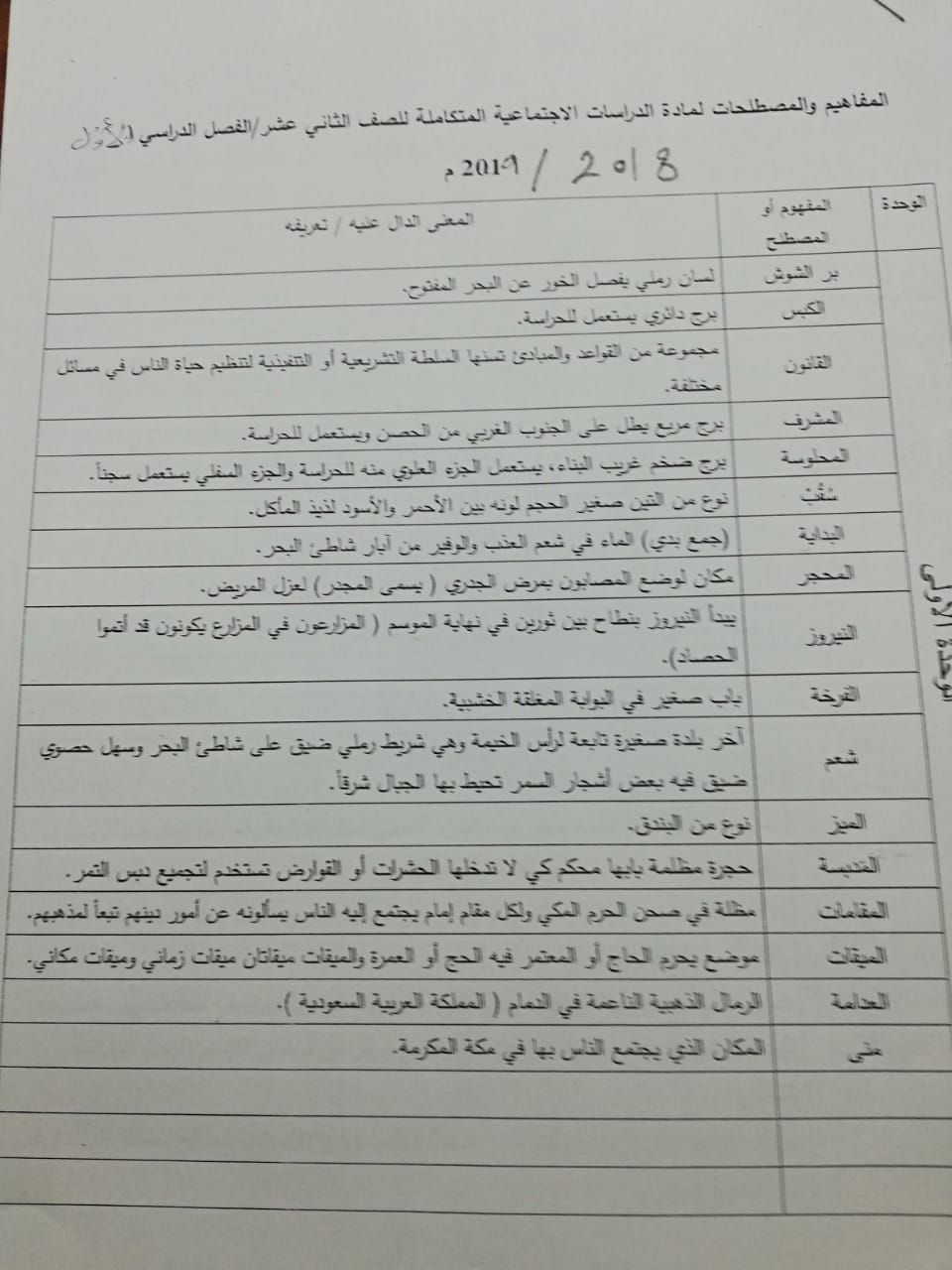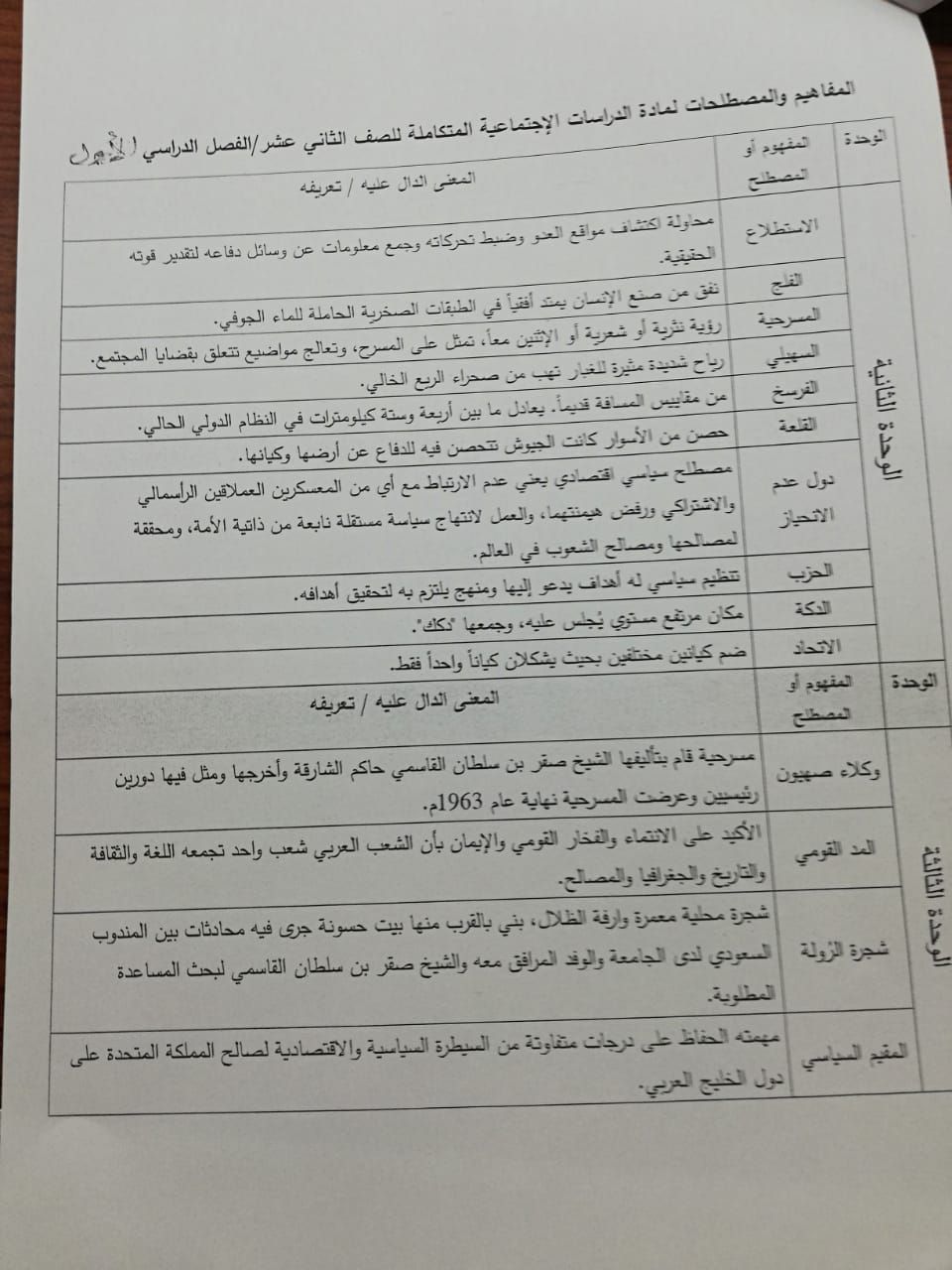 معلومات الملف: الصف الثاني عشر, الفصل الأول, اجتماعيات, 2018-2019, التعاريف المطلوبة لامتحان نهاية الفصل الاول | ||