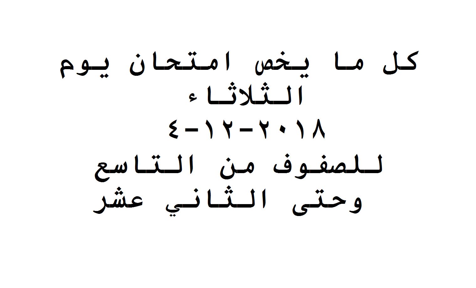 كل ما يخص امتحان يوم الثلاثاء 4122018 للصفوف من التاسع وحتى الثاني | ||
