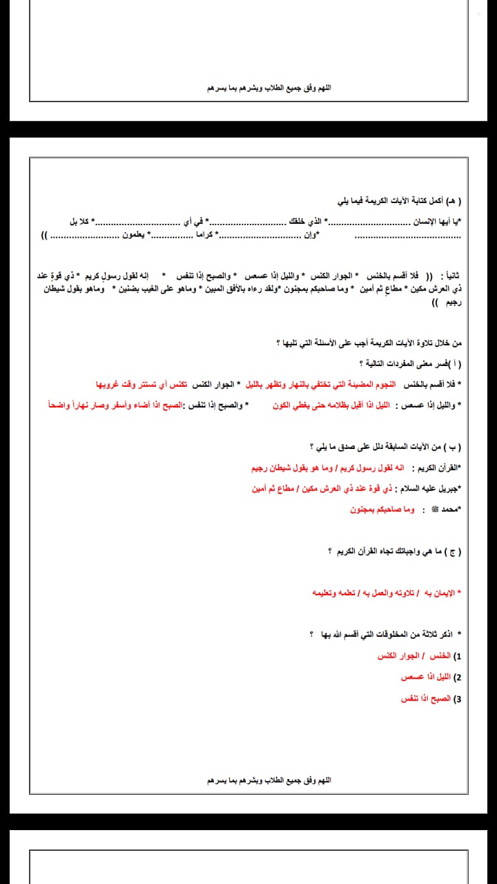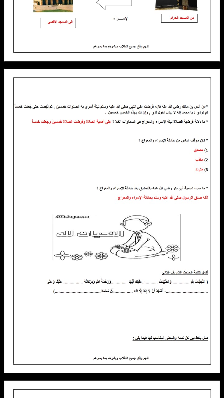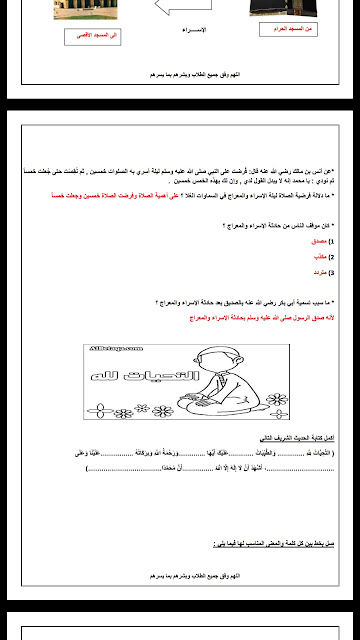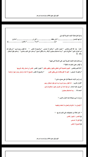 تم إيجاد الملف: مذكرة تربية اسلامية مع الاجابة مكونة من خمس ورقات / المذكرة لاتغني عن الكتاب/