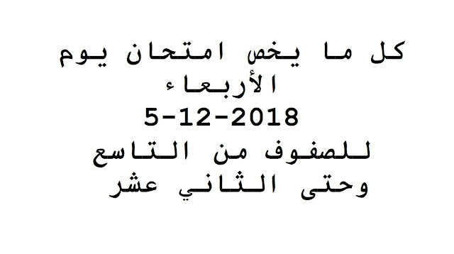 إليكم كل ما يخص امتحان يوم الاربعاء 5_12_2018 :