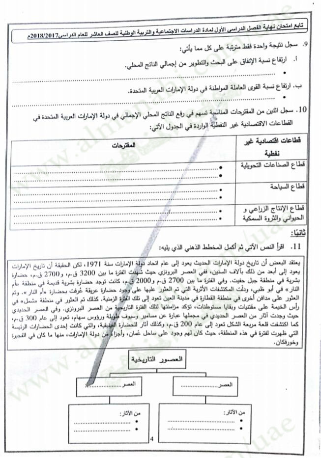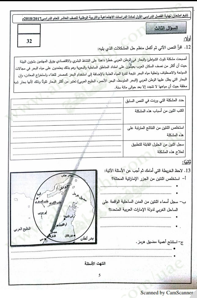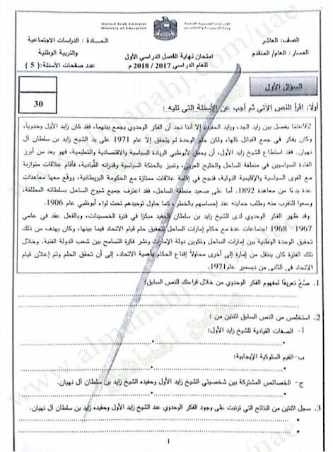معلومات الملف: الصف العاشر, الفصل الأول, اجتماعيات, 2018-2019, أسئلة امتحان نهاية الفصل الاول 2017_2018 | |||