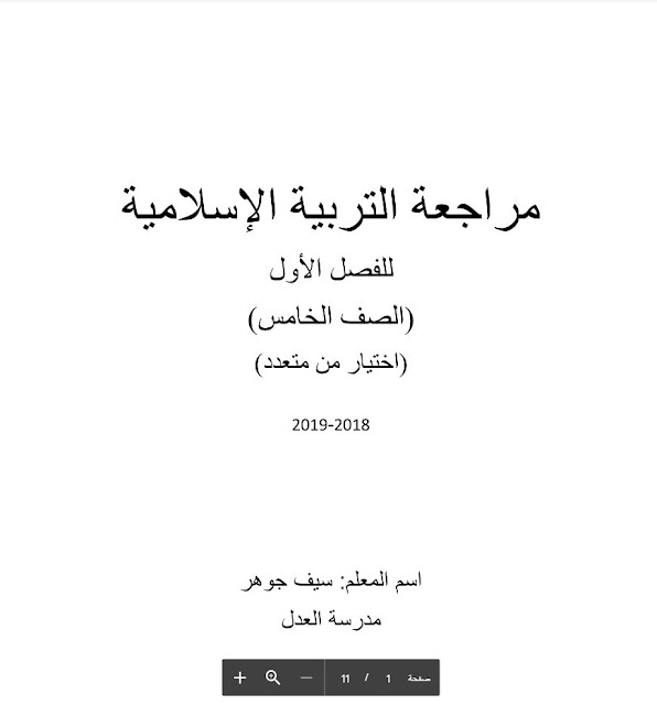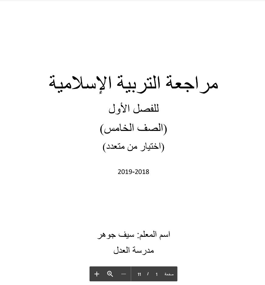 تفاصيل الخبر: الصف الخامس, الفصل الأول, اسلامية, 2018-2019, مراجعة (اختيار من متعدد) | ||