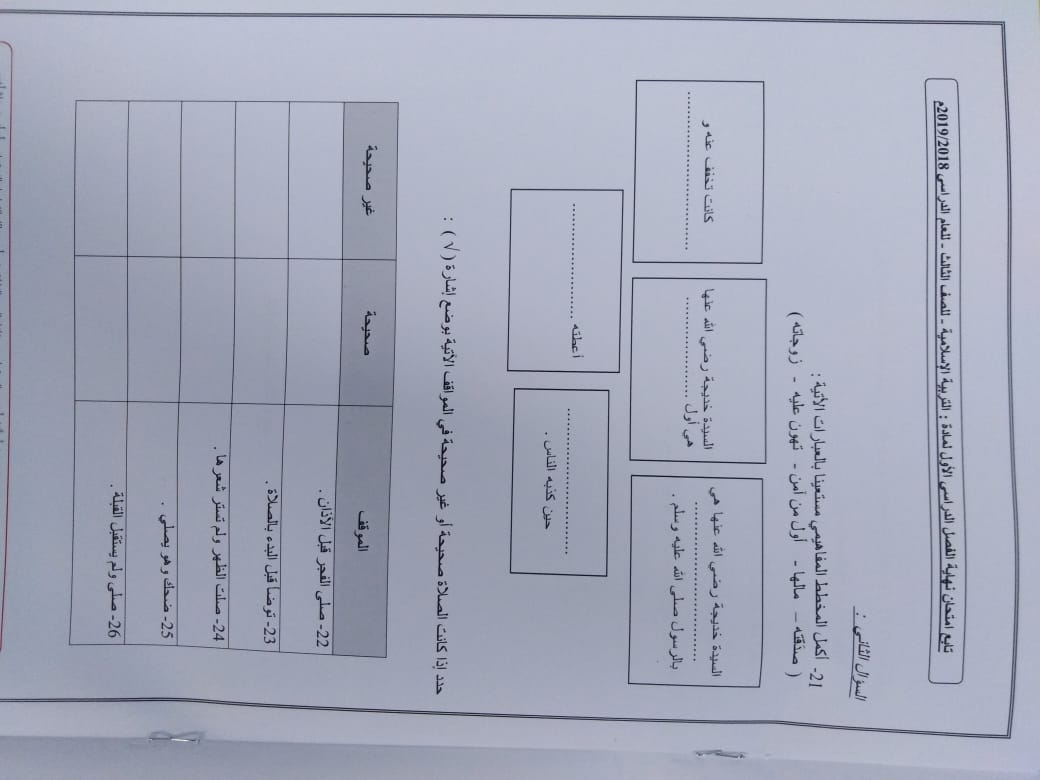 معلومات الملف: الصف الثالث, الفصل الأول, تربية اسلامية, 2018-2019, امتحان نهاية الفصل الاول 2018-2019 | ||