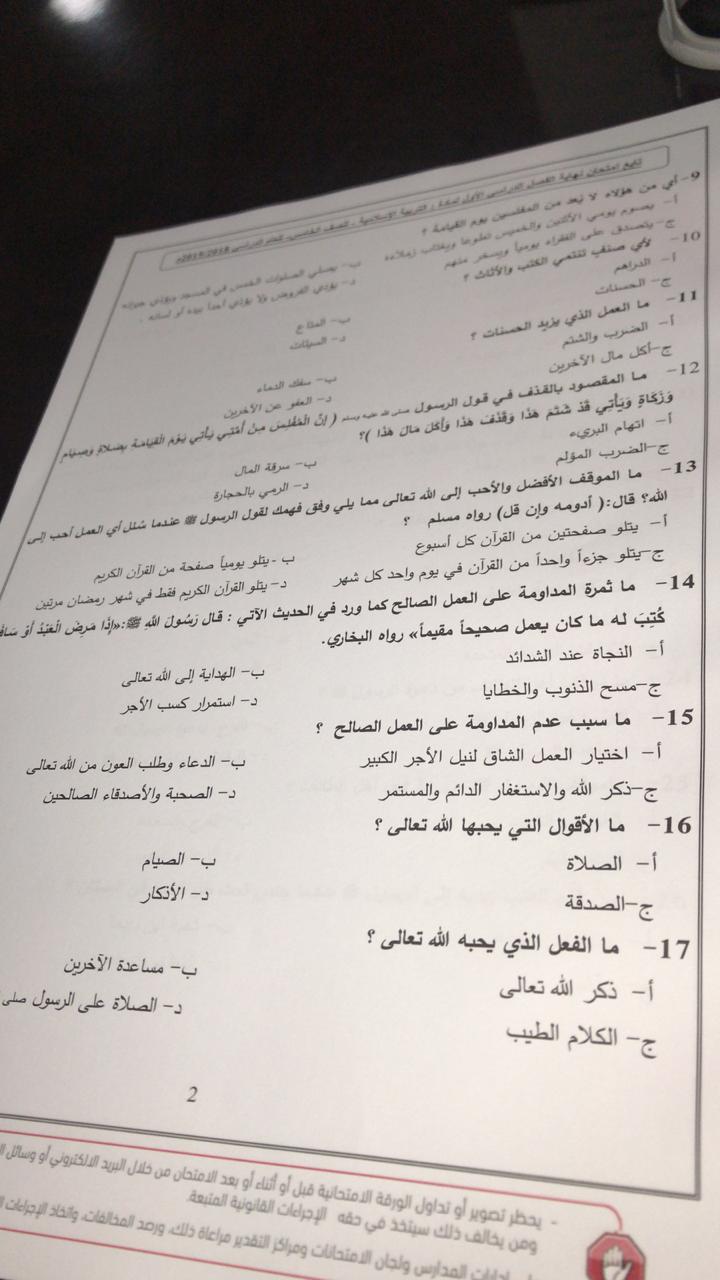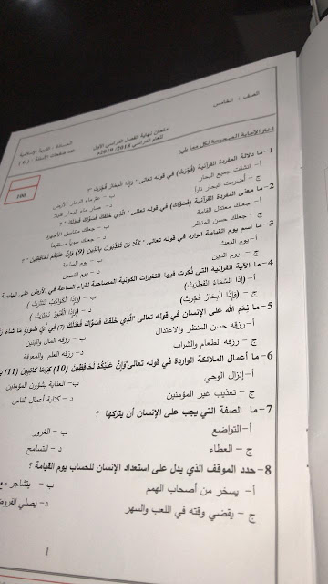 معلومات الملف: الصف الخامس, الفصل الأول, تربية اسلامية, 2018-2019, امتحان نهاية الفصل الاول 2018-2019 | ||