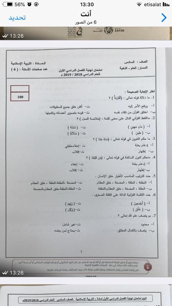 أنت هنا: موقع المناهج ⇦ المناهج الإماراتية ⇦ الصف السادس ⇦ تربية اسلامية ⇦ الفصل الأول ⇦ الامتحان النهائي |