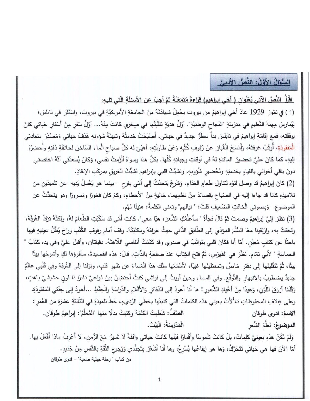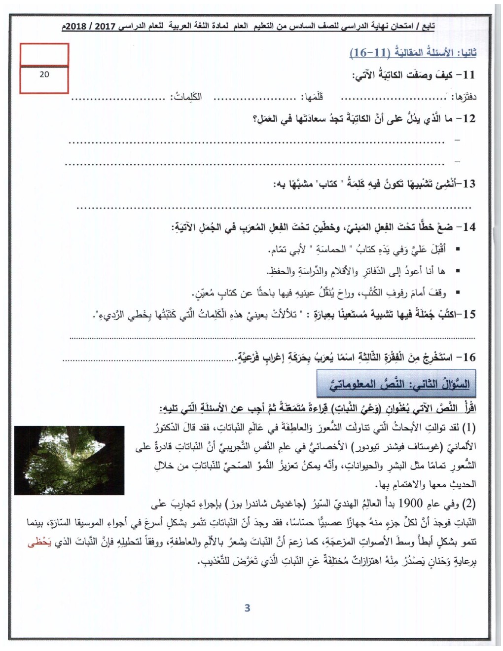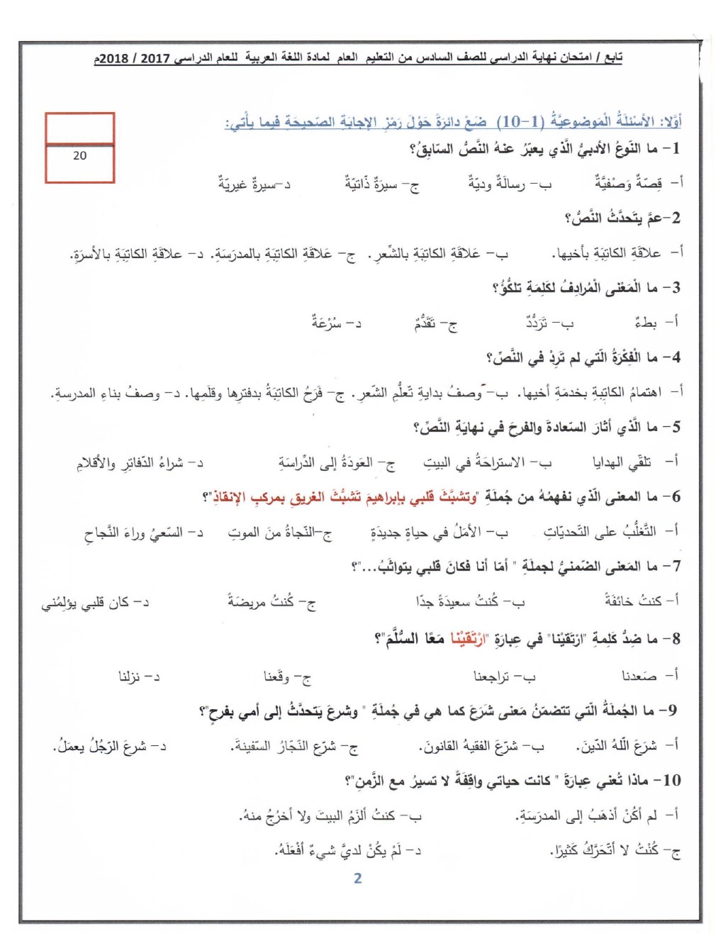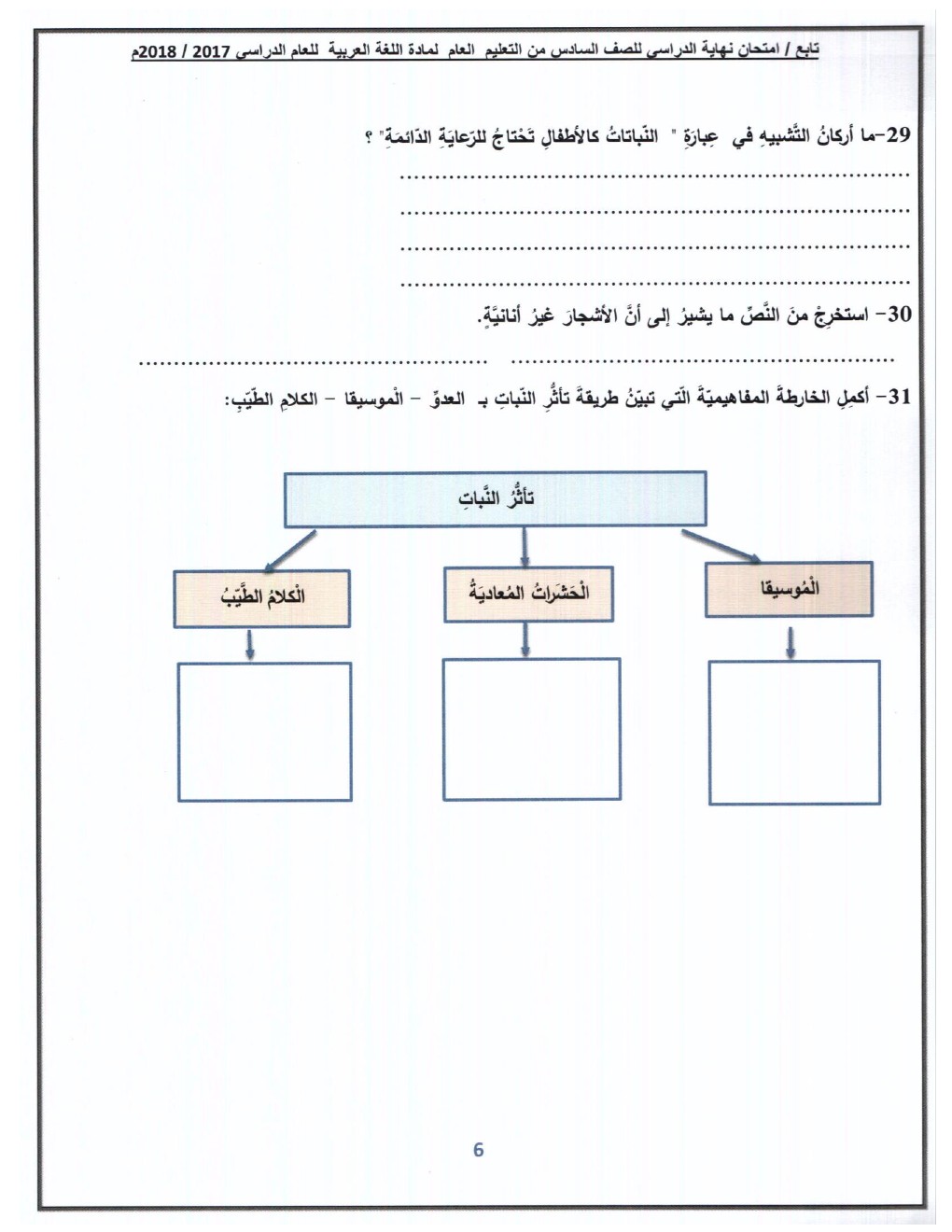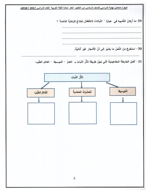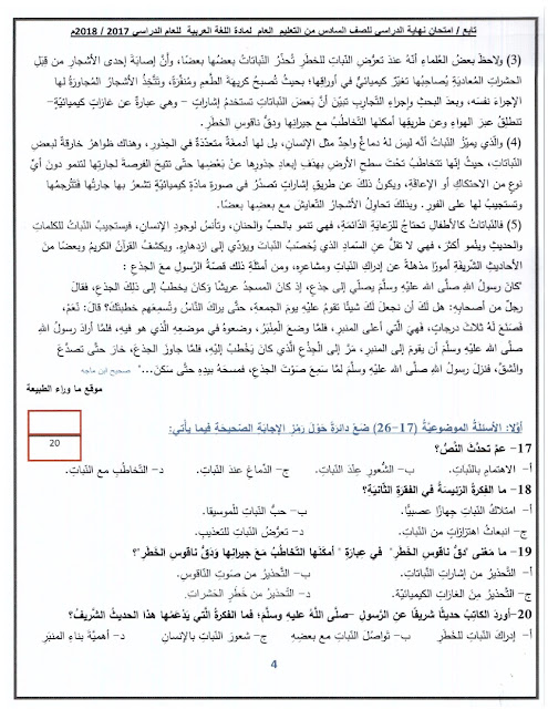 معلومات الملف: الصف السادس, الفصل الأول, لغة عربية, 2018-2019, أسئلة نهاية الفصل الأول من العام الدراسي 2017-2018 (واضحة وقابلة للطباعة) | |||