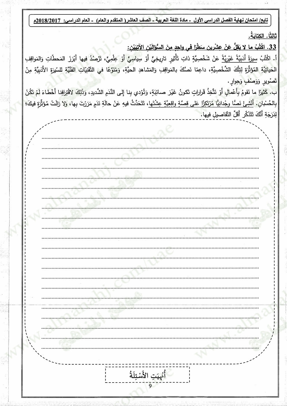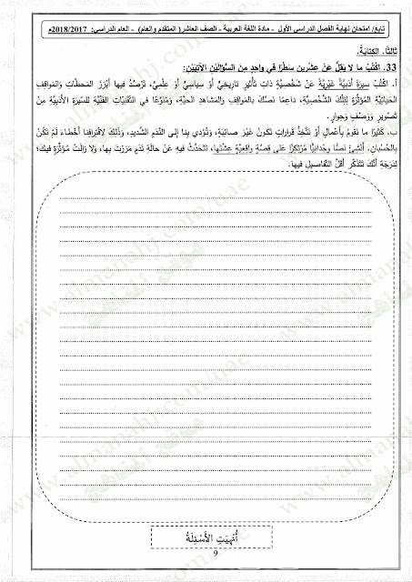 معلومات الملف: الصف العاشر.الفصل الأول, لغة عربية, 2018-2019, اسئلة العام السابق 2017-2018 بشكل واضح (جاهز للطباعة) | |||