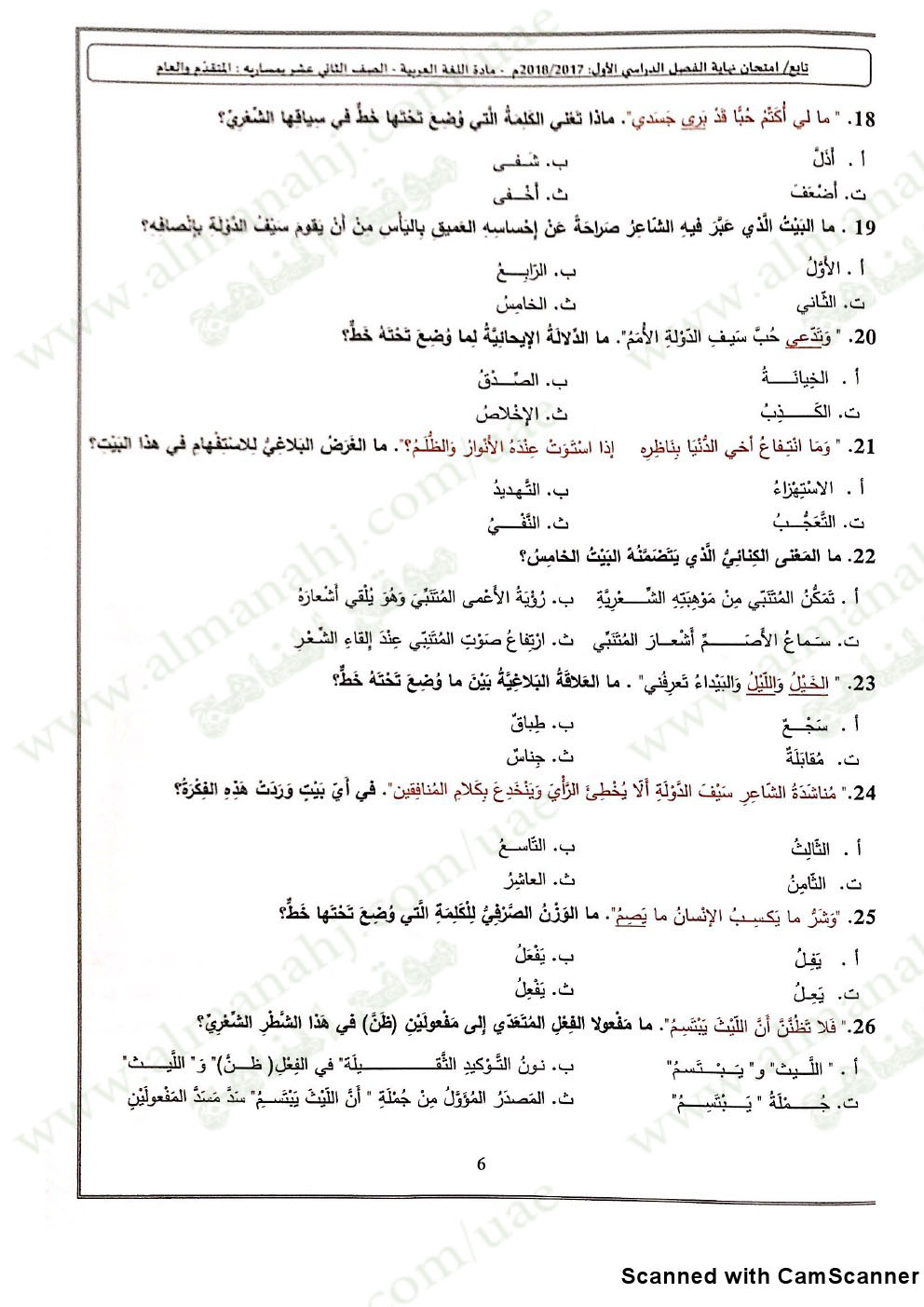 معلومات الملف: الصف الثاني عشر, الفصل الأول, لغة عربية, 2018-2019, أسئلة العام السابق 2017-2018 | |||