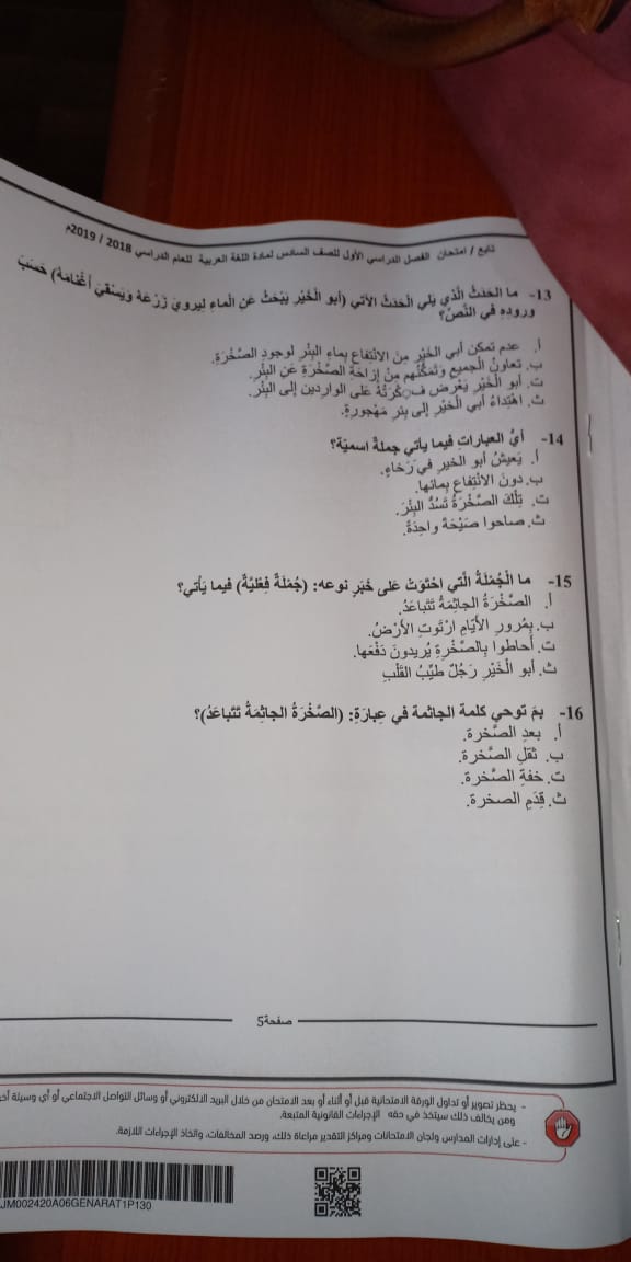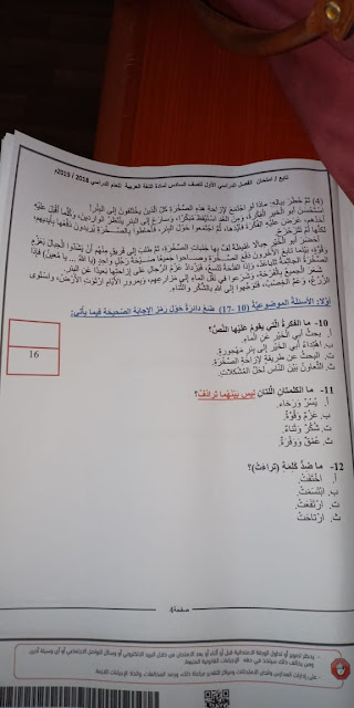 4. الصف السادس, رياضيات, مذكرة الاختبارات الوطنية من المدرسة الأهلية الخيرية